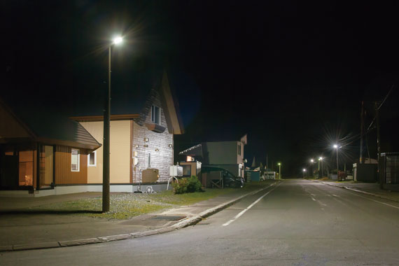 浜頓別町では、2014年10月、町内の防犯灯をLED防犯灯に改修する工事を実施しました。これまでは水銀ランプ80W、100Wを中心に使用していましたが、LED防犯灯レディオック ストリート 20VA、40VAに更新し、省エネ・電気料金の大幅削減を実現しました。設置後は住民の方々からの評判もよく、個人所有地の構内灯として、また駐車場の照明として使用したいとのお問合せをいただいています。60000時間の長寿命で省メンテナンスにも貢献するLEDが夜間も町並みを明るく照らし、安全・安心のあかりを灯しています。