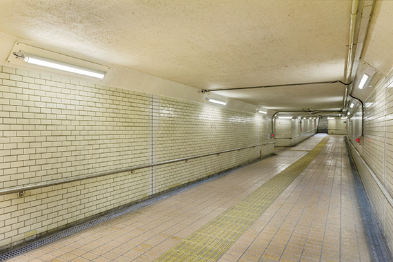 高効率・長寿命のLED照明で歩行者用の横断地下道を明るく安全に照らし出す
