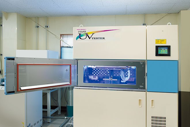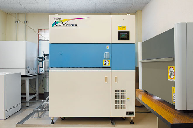 材料・基材、部材の基礎研究開発に注力し、時代に先駆けた技術を追求し続けている九州ナノテック光学株式会社では、経済産業省の2018年度戦略的基盤技術高度化支援事業(サポイン事業)に認定され、その助成金を活用して岩崎電気の超促進耐候性試験機「アイ スーパーUVテスター SUV-W161」を導入しました。メタルハライドランプ式の同装置は、キセノンランプやカーボンアーク式と比較して早く評価をすることが可能で、1年間の暴露量を最短48時間で再現できる驚異的な促進性を持つため、液晶材料の開発、構成材料の選定をするうえでの見極めをよりスピーディに行うことができる点を高く評価しています。