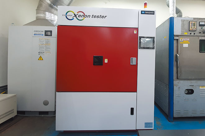 三陽工業株式会社では、2020年8月に、耐候性試験機を更新し、既設カーボンアーク方式の耐候性試験機に替えて、キセノン方式の「アイ スーパーキセノンテスター XER-W83」を導入いただきました。これまで、台湾の耐候性試験機はカーボンアーク方式を主流としてきましたが、時代の流れとともに台湾市場でもキセノン方式に更新する流れが出てきています。