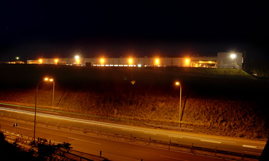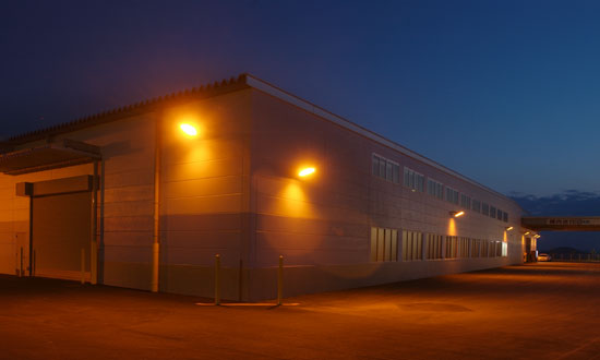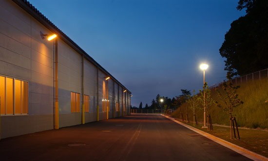 Myリストに追加飲料水製造工場のため密封性の高い施設となっていますが、緑豊かな自然環境に位置することから虫が寄り付くことの対策として虫飛来を抑制する黄色高圧ナトリウムランプ“エコイエロー”を設置しています。エコイエローを工場壁面に設置し、反対に誘虫性が高いメタルハライドランプを用いたポールライトを敷地内の外周に設置し虫を集め、工場側への飛来を減少させています。また倉庫内には虫の寄り付きにくいUVカット形メタルハライドランプを採用し、爽やかな白色光で作業性を落とさない視環境となっています。
