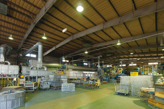 工場内の照明をLED化し、照度アップを図りつつ大幅な省エネを達成