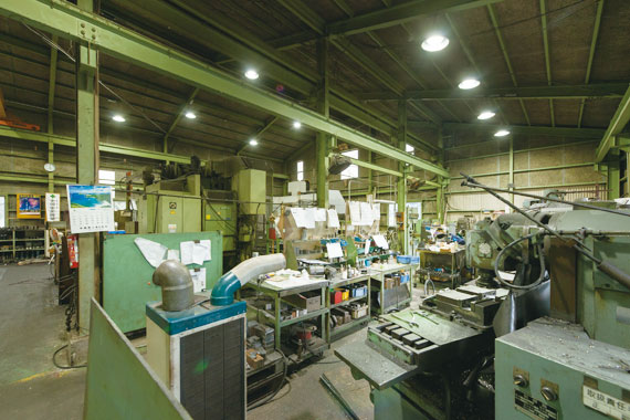 工場内には多種多様の機械を配置していますが、以前は照明のあかりが工場内に届きにくくなっていました。そのため、品質向上・高完成度を目指す取組みの一環として、LED照明への更新を行い、これまでの水銀ランプ400Wに替えてレディオック LEDアイランプSP 140Wを採用しました。大幅な省エネ・節電を実現するとともに、以前に比べ照明の点灯時間がとても早くなり明るさも倍増し、作業効率の向上、納期の短縮化・高完成度化に役立っています。