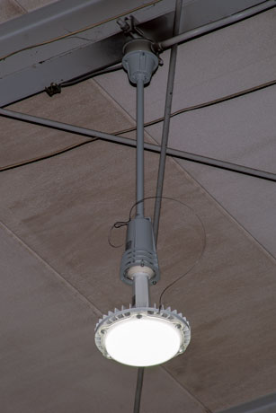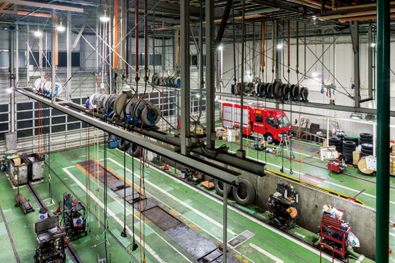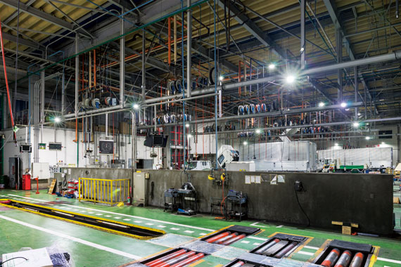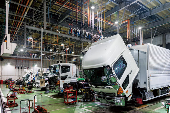 トラックやバスなど商用車の整備・修理工場をLEDのあかりで照ら出し、省エネを推進しつつ安全で快適な作業環境を創出