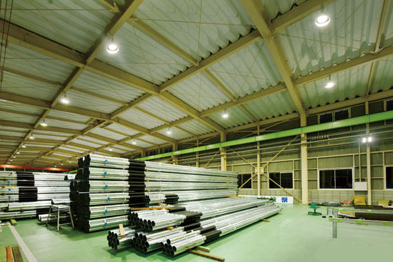 業界トップクラスの売上・シェアを誇る総合ポールメーカーの主要工場をLED照明で照らし、明るさアップとともに大幅な消費電力の削減を達成