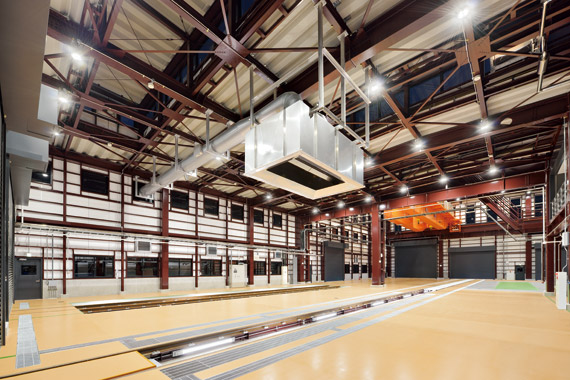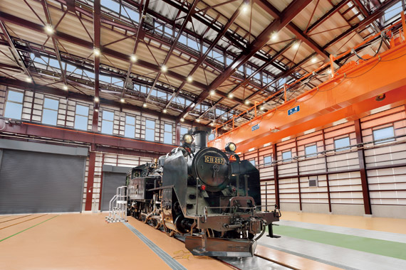 SL復活運転に向けて新設された検修庫をLED照明で照らし明るく作業しやすい環境と省電力化を実現