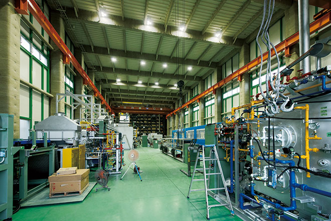 東洋炉工業株式会社は1967年に創業以来、半世紀以上にわたり、連続炉という工業炉の製造・販売を行っている専業メーカーで、北米や東南アジア各国など海外にも事業を展開しています。メッシュベルト式連続熱処理炉については国内トップクラスのシェアを占めており、主に自動車部品(ねじやベアリング)製造時に使用されています。私たちがつくるのは規格化された工業炉ではなく受注生産型の連続炉で、企画・設計から制作・据付、メンテナンスまでトータルに手がける一貫生産システムを構築し、お客さまのご要望に細かく柔軟にお応えしています。本社・工場は大阪府堺市にあり、2018年3月に築40程年経過していた旧工場を取り壊し、新工場を建設しました。南海トラフ地震など今後発生が予測されている万一の災害への対策も考慮のうえ、安全性及び作業環境向上のために建て替えたもので、新工場は鉄骨造2階建て、建設面積1,100m²、延床面積2,084m²、耐震・耐火構造となっています。