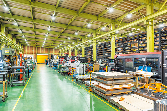 島根県雲南市、出雲大社から南へ約40kmの自然豊かな山あいに位置する協栄金属工業株式会社は、「過疎地域の雇用の場を守る」という大きな役割を持って1972年に創業し、地場の産業として地域社会の発展、また生産技術の向上に努めてきました。精密薄物板金加工、パイプ三次元曲げ加工、組立、自社製品の製造販売などを行っており、約4,000坪の広大な敷地内にある6つの工場には、同業界で山陰地方最大級となる120台以上の充実した生産設備を備えています。当社は材料調達から設計、加工、組立まで一貫した生産ができることを強みとし、厨房機器や農業機械、医療・介護器具、建設機械など5,000種類以上の金属部品の製造をしています。