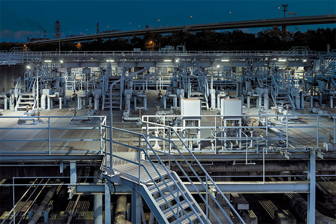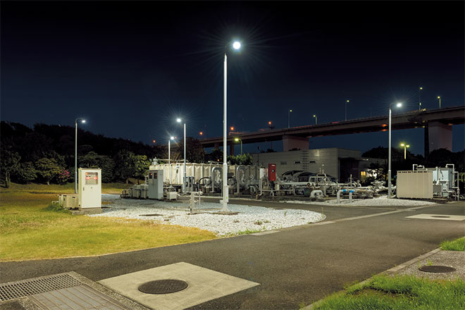 東京ガス株式会社では、長きにわたり安定操業を続けるために、定期点検や分解整備、修理、設備メンテナンスなど、地道に継続的な保守作業を欠かさずに行っています。その一環として、2021年度~2022年度にかけて構内照明の更新工事を実施し、既設防爆形蛍光灯器具に替えて防爆形LED照明器具をご採用いただきました。