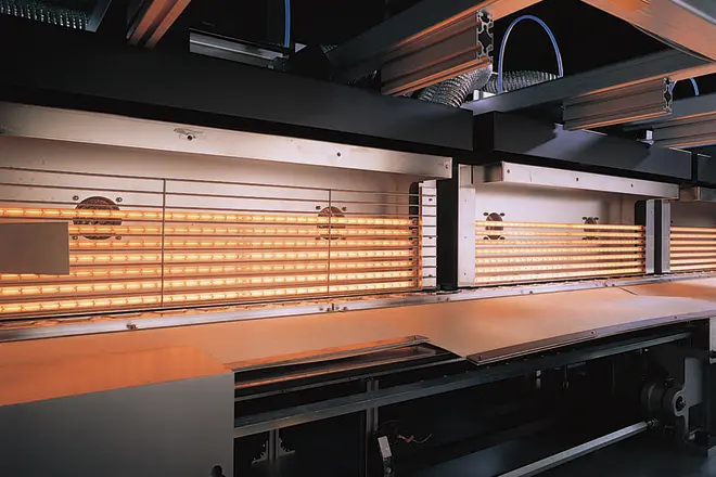 工程の中でも重要なファクターとなるプリフォーム加熱にハロゲンランプを使用