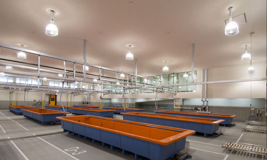 Myリストに追加一色町にある一色漁港は愛知県の3大漁港のひとつにも挙げられ、三河湾で最も水揚げ量の多い魚市場も併設されています。ここに県で初めてとなる高度衛生管理型の水産物荷捌き施設が誕生しました。高天井用照明器具“プロフォルム”とセラミックメタルハライドランプ“セラルクス”の組合せで「高演色性+省エネ」を実現し、鮮魚のみずみずしさを引き出す「活気ある環境」となりました。