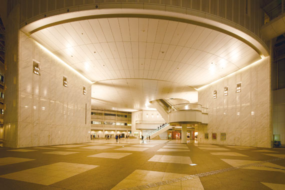 LED投光器はいずれも調光タイプを採用しており、今年中には自動調光システムを導入し、さらなる機能向上を図る予定です。オフィスビルの白色光と対比する電球色のLEDがグランドロビーをやわらかな光で包み込み、文化施設を内包している空間にふさわしい、質の高い照明環境をつくり出しています。