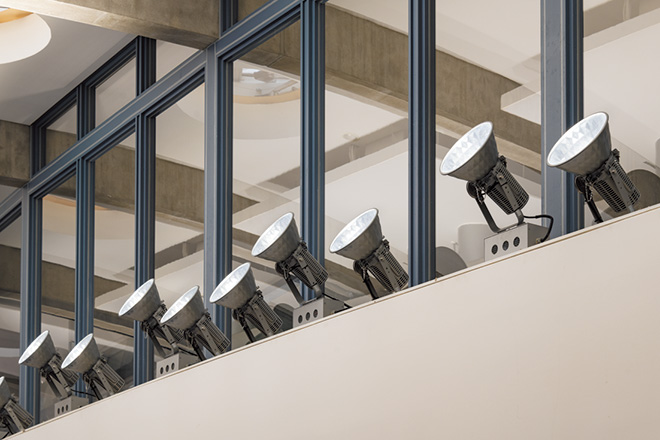 岐阜県科学技術振興センターでは、2021年11月に照明設備をLED化する改修工事を実施しました。LED投光器「レディオック フラッド スポラート」、「レディオック フラッド ネオ」や、特注ブラケットと「レディオック LEDアイランプ」などをご採用いただき、それぞれの空間にふさわしい色温度での演出照明を行いながら省エネ化を進めました。