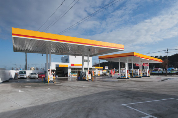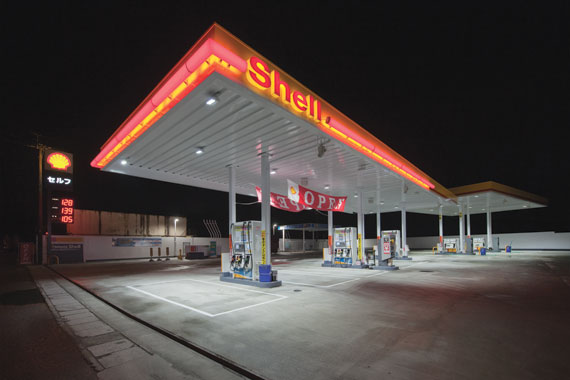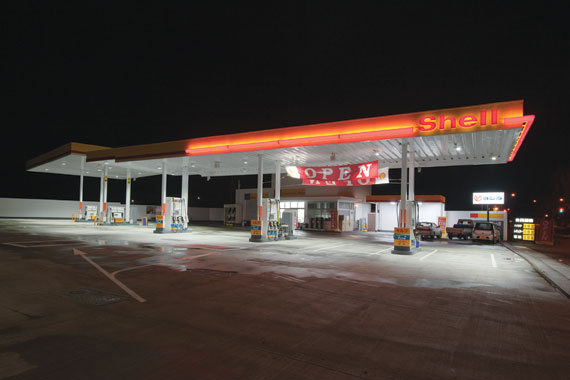 サービスステーションにLED投光器を導入し大幅な省エネ効果を実現