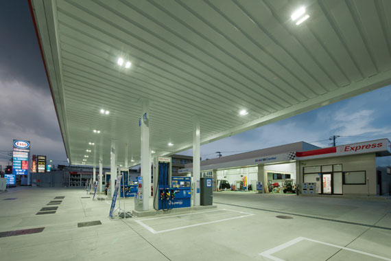 静岡県内最大級クラスの大型セルフSSを省エネに貢献するLEDの光で快適に照らし出す
