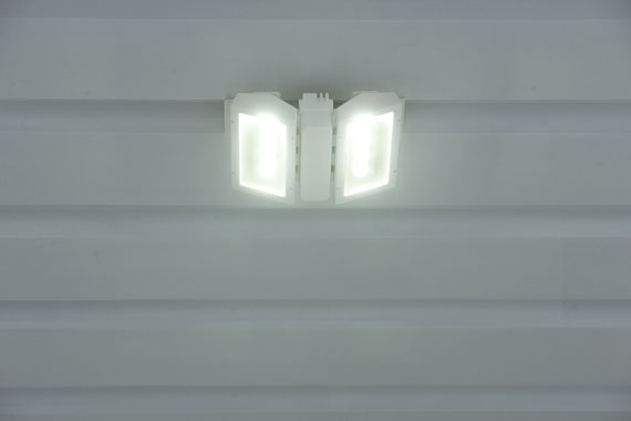 年中無休・24時間営業のSSを快適に照らし出す光として、省エネを推進するLED照明が導入され、キャノピー照明及びヤード灯にはLED高天井用照明器具レディオック シーリングHBが設置されました。