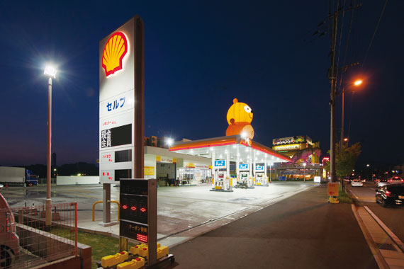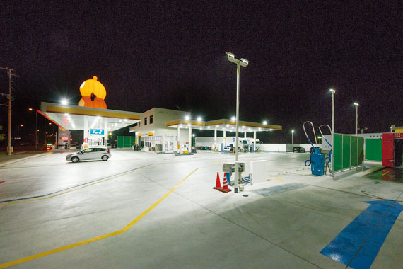 好立地に位置するサービスステーションを省エネに貢献するLEDの光で安全・快適に照らし出す