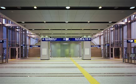 当施設は先行開通した5駅の中で新八代駅より3駅目、鹿児島県出水市内に位置します。出水市は、市内に武家屋敷が残り、また冬の使者“ナベヅル”の飛来地として有名です。そのため駅舎屋根のデザインは武家屋敷群と鶴が羽ばたく様子をイメージし、空を写しこむ大きなガラス面により自然との調和を図っています。
