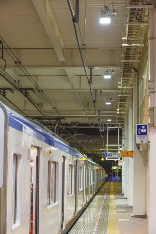 駅のホーム照明をLED化し照度をアップさせると同時に大幅な省エネを実現