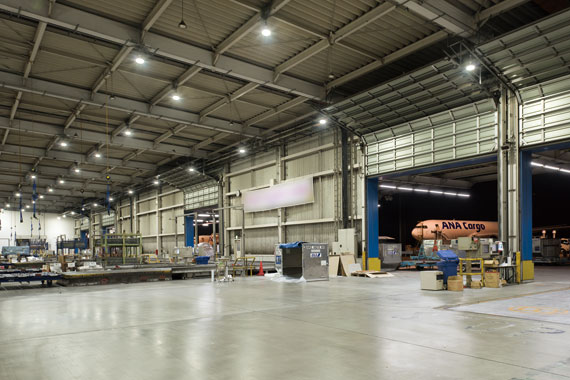 ANAグループの輸出貨物を取り扱う施設をLED照明化し、大幅な省エネを実現しつつ、明るく安全・快適な作業環境を創出