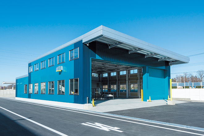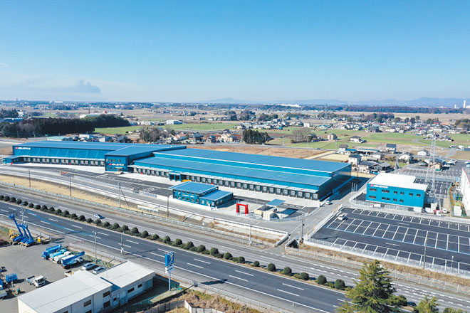 2023年3月、上三川町の上三川インター産業団地に完成した宇都宮物流センターは、旧宇都宮・壬生の各物流センターを移転統合し、先進性と効率性を追求した大規模冷凍・冷蔵倉庫及び本社機能、整備工場を備えた新たな物流センターとして建設したもので、同年4月より操業を開始しています。新4号国道に面し、北関東自動車道 宇都宮・上三川ICから3.4kmという好アクセスに位置する同物流センターは、敷地面積35,911m²、本社棟を含めた延床面積18,791m²という広さを持ち、51か所のトラックバースを有するとともに約170台の大・中型冷凍冷蔵トラックを保有し、24時間・365日入出庫体制を整えています。北関東の地理的利点をいかして、物流業界における2024年問題解決の一助となるよう、冷凍・冷蔵食品の全国ネットワークの中継地として社会に貢献していきたいと考えています。