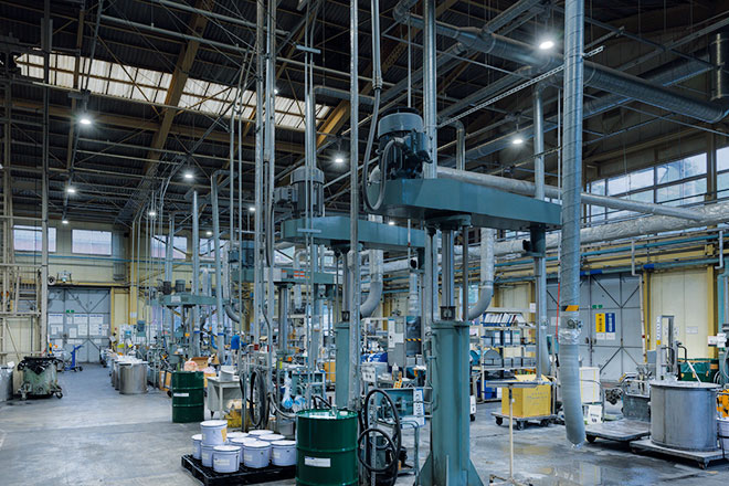 山梨県山梨市にある山梨工場は、敷地面積37,464m²という規模を持ち、主力のスクリーンインキを生産している帝国インキの「マザー工場」です。