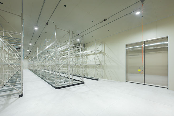 倉庫を照らす照明器具には、防爆形LED高天井用照明器具「レディオック EX ディオZ1」を採用しました。既存の倉庫では、水銀ランプを中心にかなりの数量の照明器具を設置していましたが、時間の経過とともに十分な照度を確保できていませんでした。今回のLED照明器具については、既存倉庫に比べて数量が少なく間隔も空いていましたので最初は少し不安に感じましたが、実際に点灯してみるととても明るくなり、安全に作業を行える照明環境となったことに満足しています。LED照明は瞬時点灯・再点灯が可能で使い勝手がよく、ランニングコストなど省エネにも貢献してくれるものと考えています。完成後に開催した同業他社向けの見学会には多くの方々にお越しいただき、倉庫内の明るさについてもご好評をいただきました。