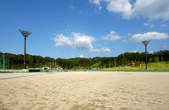 多目的グラウンドは、使用目的にあわせて照明の切り替えができるナイター照明を備えていて、光源には低誘虫ランプのアイ マルチメタルランプが採用されました。