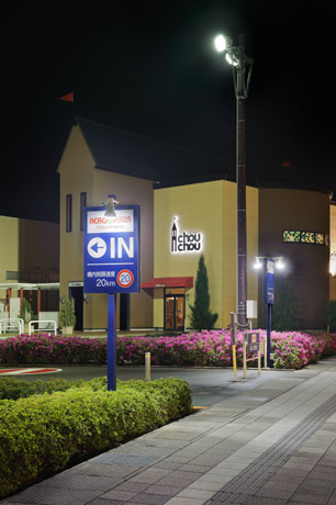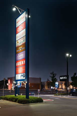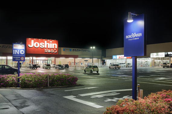 魅力的な店舗が集結する地域密着型ショッピングセンターの駐車場共用部を省エネに貢献するLEDの光で安全・快適に照らし出す