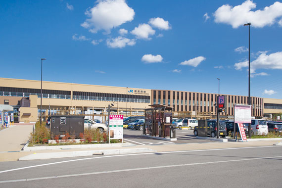 Myリストに追加新高岡駅は、2015年3月の北陸新幹線開業に伴い新設された駅で、高岡市中心部から南へ約1.5km、高岡駅とは城端線で1駅の距離に位置しています。高岡市では、交通利便性の向上や中心市街地の活性化を目的として、新高岡駅周辺に約800台の駐車場を整備しました。この内、市営新高岡駅第1、第2、第3駐車場の計256台分は「新幹線パーク&ライド」の屋外平面駐車場となっています。