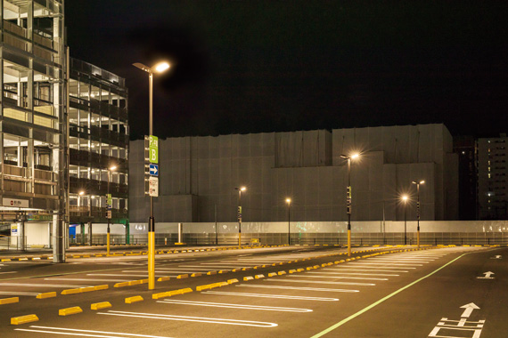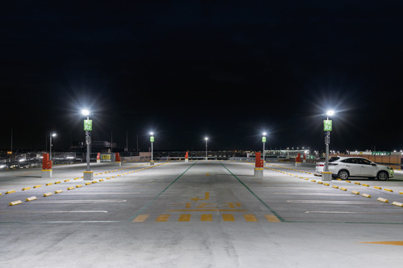 延床面積は約166,000m²で、3階建ての店舗棟には飲食や衣料雑貨など多彩なラインアップの247店舗が揃い、エリア最大級の約3,500台収容可能の駐車場も完備。オープン以来、地元の方々をはじめ多くのお客さまに訪れていただき、賑わいをみせています。ららぽーと湘南平塚では環境に配慮し、施設の共用部の照明はLED照明としており、屋外照明についても、省エネに貢献するLED照明を採用しました。屋外の照明エリアは大きく分けて平面駐車場、外周道路、商業棟屋上駐車場、立体駐車場屋上(東棟、西棟、北棟)に分類されます。