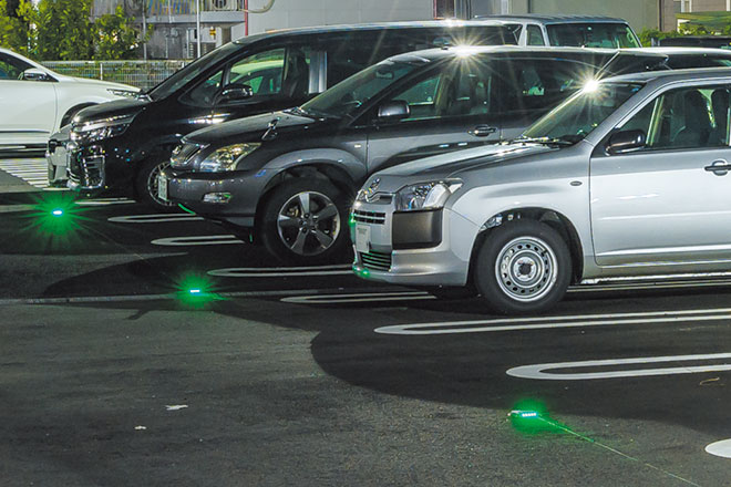 ショウワパークでは、2018年7月、駐車場の拡張に伴い、満空車状況を表示することで空いている駐車スペースが探しやすくなる招き灯(センサ付LEDランプ)を設置しました。緑色は空き、赤色は停車中を表し、遠くからでも奥の駐車スペースの空き状況が確認出来る招き灯を路面に設置するケースは珍しく、ショウワパークで初の試みとなりました。また、事前精算機や出入り口がわかりやすいよう入口に緑色のサインを設置し、入出庫がスムーズに行える設備を整えるなど、より快適な駐車場づくりに取り組みました。