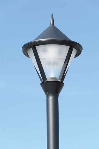 駐車場照明についても、通常は投光器を使用していますが、当駐車場では景観を重視するとともに、光の広がりがあり投光器と比較して数量を抑えながら十分な照度を確保出来るLEDポールライト「レディオック エリア テクノレイ」を採用しました。全方向に広がる光で駐車場を効率よく照らし、省エネに貢献しつつデザイン性にも優れたあかりとすることで、無機質な照明ではなく、安全で快適な照明環境をつくることが出来たと考えています。