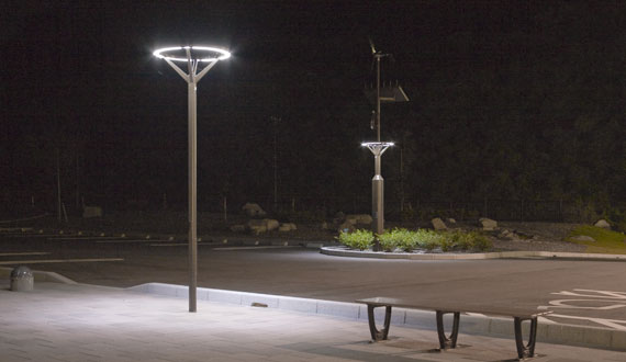 大自然の中の照明として、自然エネルギーを活用したLEDハイブリッド太陽灯を設置