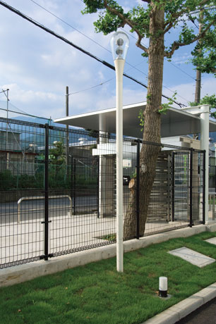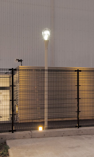環境にやさしく低誘虫性のLED照明器具でゲート付近を安全に照らす
