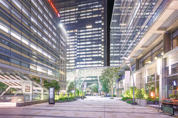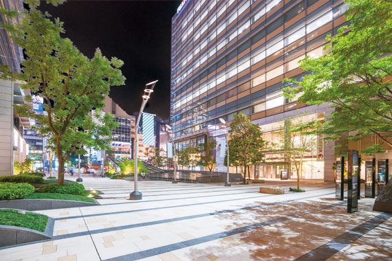 Myリストに追加東京・赤坂にある東京ミッドタウンは、商業施設、文化施設、オフィス、ホテル、住居、病院、公園などが集約された複合施設です。2007年3月、広大なグリーンと6つの建物からなる新しい都市空間として開業以来、常に多くの人々で賑わう都心の人気スポットとなっています。外苑東通りに面しているエントランスから各施設へとつながるメイン通路には、ミッドタウンタワーとミッドタウンイースト、ミッドタウンウエストの3つの高層ビルに囲まれた緑豊かな空間「プラザ」があり、カフェやパティスリーなど個性的なショップが並んでいます。奥建物につながる建物と建物の間におけるメイン通路は、道路からU字構造となっていてポール灯だけでは十分な照度を確保出来ていなかったため、通路全般の照度を上げる目的で、投光器の追加工事が実施されました。