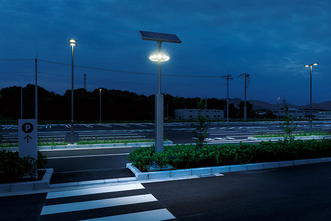 鉄筋コンクリート造り3階建ての施設の屋外照明には、LEDポールライト「レディオック エリア セレーネ」、LEDアプローチライト「レディオック アプローチ」が採用されました。また、医療センター入口付近にはLED太陽灯(レディオック エリア Dタイプ)を設置し、環境に配慮したあかりで夜間の安全性を高めています。