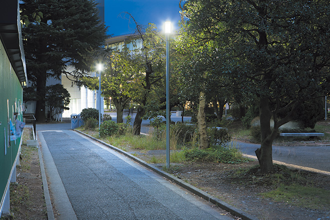 緑豊かな都心型大学のキャンパス内を省エネに配慮しつつ明るく安全に照らすLEDのあかり