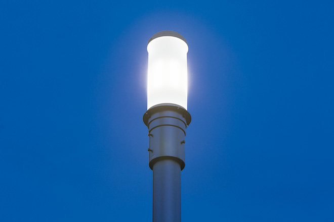 明治大学では省エネ推進の一環として、2018年6月に和泉キャンパス構内の照明改修工事を実施し、LED照明に更新しました。外灯については、既存のポールを活用できるLEDポールライト「レディオック エリア トリカ-エル」を採用いただき、省エネを推進しつつ既設と同等以上の明るさを確保し、空間に広がりのある光でキャンパス内を安全に照らしています。