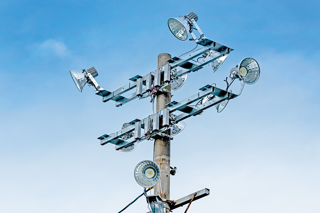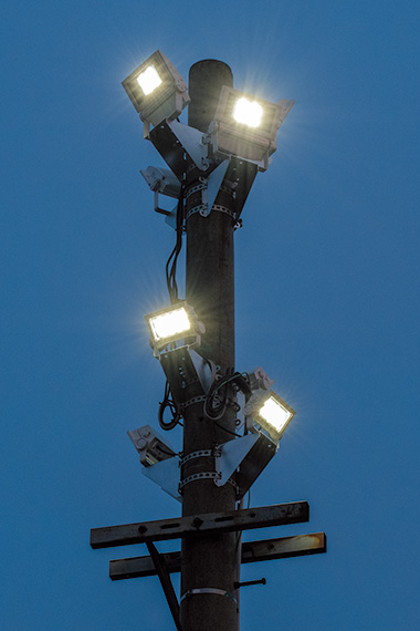 生駒山上遊園地では、冬季休園が明ける2024年3月の営業再開に合わせて、新アトラクションのオープンや遊園地内のレストランリニューアルを実施し、園内の照明をLED化する工事も行いました。遊園地内の街路灯及び駐車場照明をLED照明に更新するとともに、新アトラクション「シューティングライド ビーム★スターズ」については施設のライトアップをスタートさせ、夜間も賑わいのある景観を演出しています。駐車場照明にはLED投光器「レディオック フラッド スポラート」を、園内の街路灯にはLED投光器「レディオック フラッド ネオ」をご採用いただき、レトロな雰囲気が魅力的な遊園地内を明るく安全に照らしています。