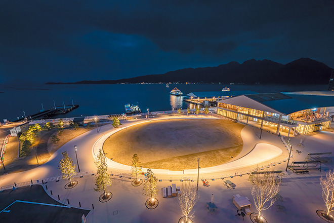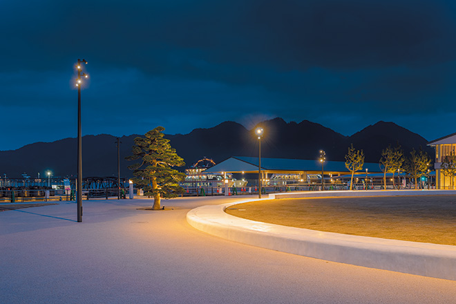 世界遺産・宮島の玄関口に誕生した憩いの広場をやさしく照らすあかり