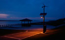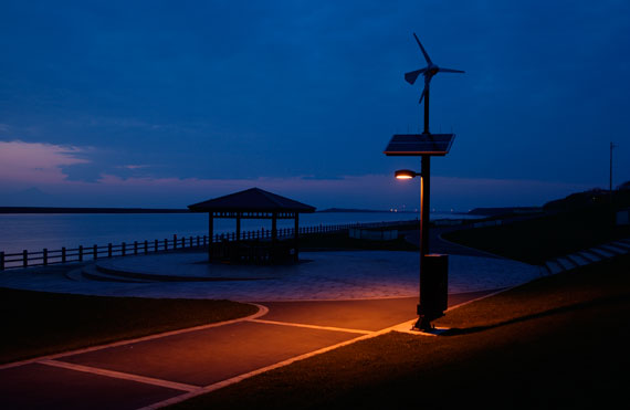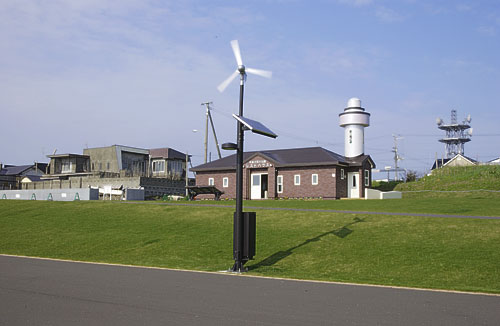 日本海に面し、夕日を眺めながら遠くに利尻富士を望むことも出来る景観の素晴らしさを特長としている公園では、風力と太陽光の自然エネルギーを利用して環境への配慮を求めた照明として、ハイブリッド太陽灯を設置しました。風が強い地域であるため、風力を最大限有効に利用出来、夜間も優しい光で公園を照らしています。