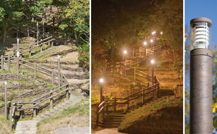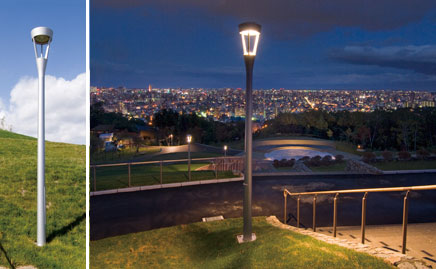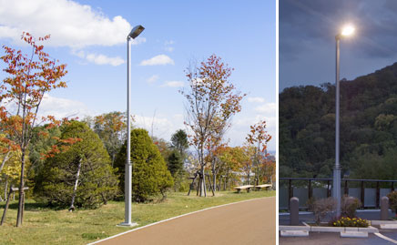 札幌市街を一望できる緑豊かな公園を快適に照らし出す照明のかたち