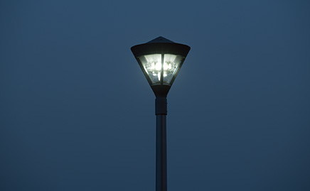 灯具の構造は既設アルミポールに適合し、LEDランプは1台あたり10W(白色)×12個を内蔵し、LEDランプの光学特性をいかして園路を効率よく照らし出しています。