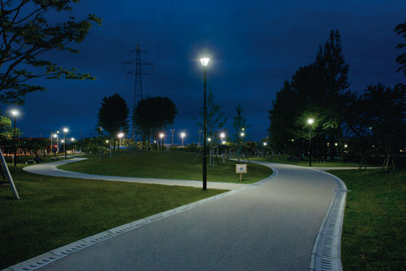 市民に広く親しまれる公園を省エネに貢献するLED街路灯で安全に照らし出す