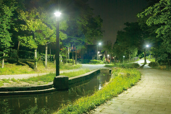 緑豊かな散策路として親しまれている緑道を、省エネに貢献するLEDの光で快適に照らし出す