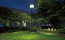 緑豊かなキャンパス内の外灯をLED化し、これまでの雰囲気を踏襲しつつ明るさアップと省エネ・省メンテナンスを実現