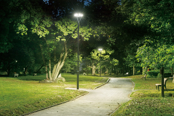 市民の憩いの場として親しまれている歴史ある公園を周辺環境に配慮したLEDのあかりで快適に照らし出す