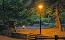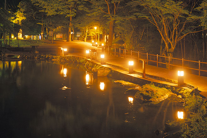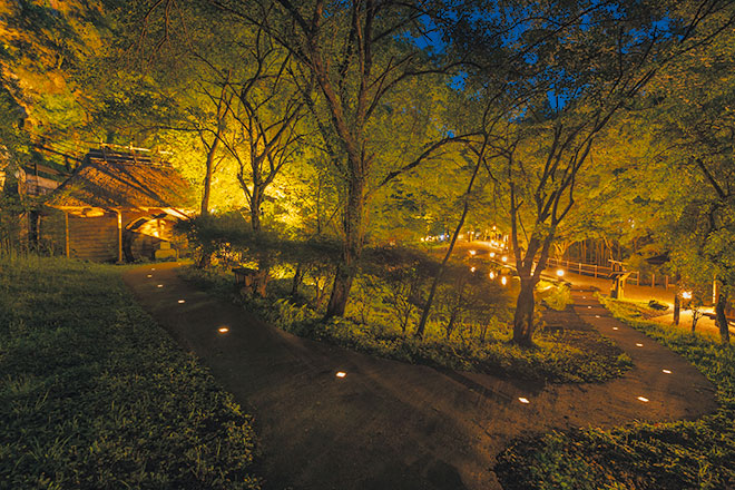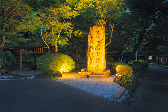 夜の観光スポットとして人気の高い高千穂峡ライトアップへと続く遊歩道を周辺の景観に配慮したあかりで安全に照らし出す
