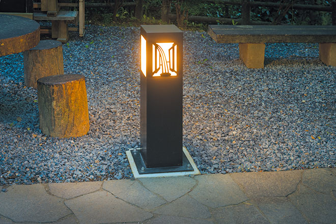今回の照明整備にあたっては、夜間の安全性確保を目的としつつ、豊かな自然に恵まれた景観、そして滝のライトアップに影響が出ないよう配慮して器具を選定し、光源は電球色で統一することで、周辺環境に調和する柔らかな雰囲気を演出することが出来たと考えています。